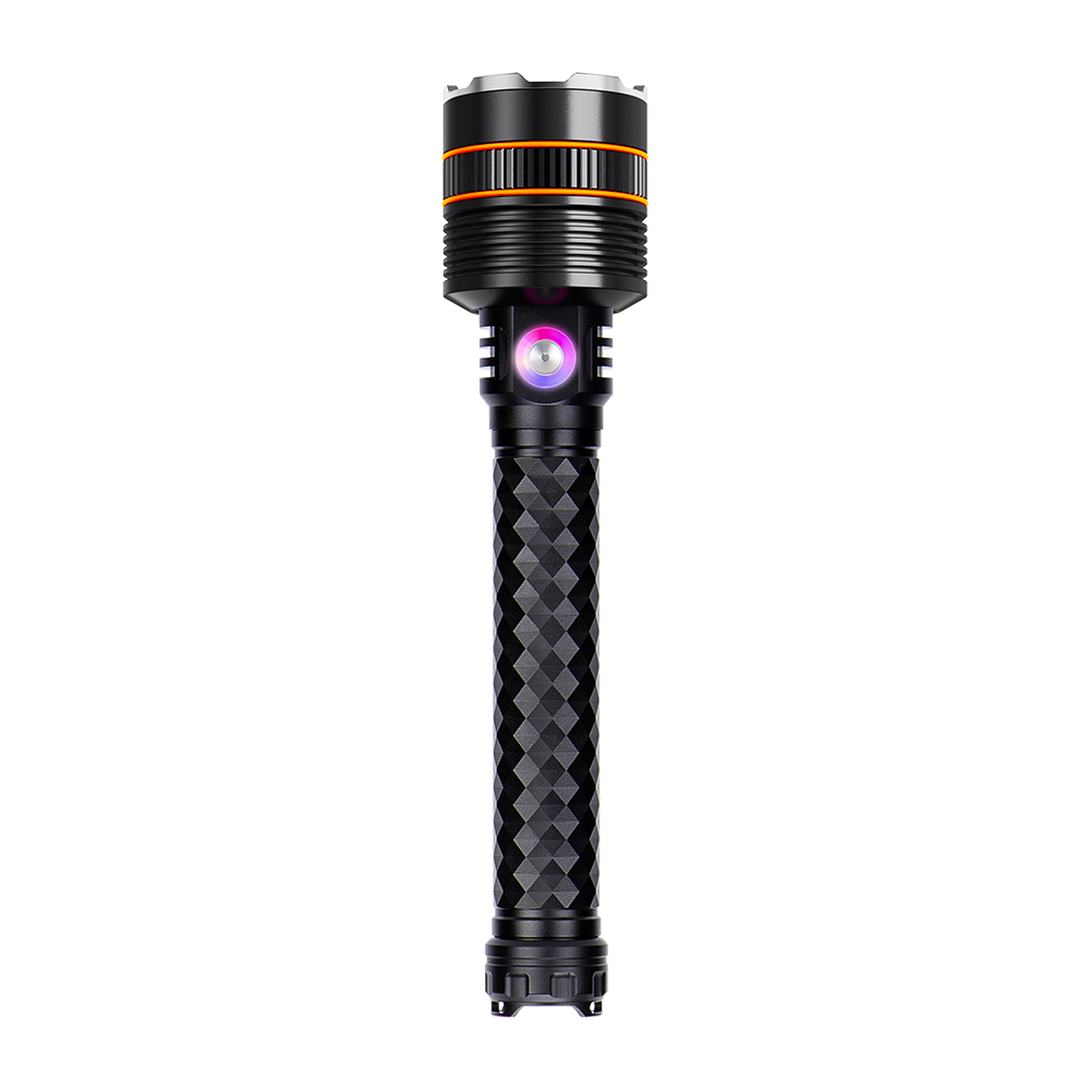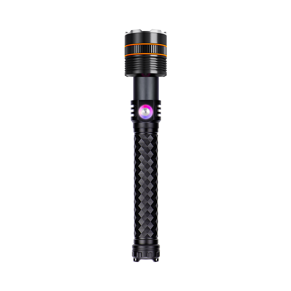 The flashlight also includes an intelligent control system, allowing quick mode switching and a lock function to prevent accidental activation.
