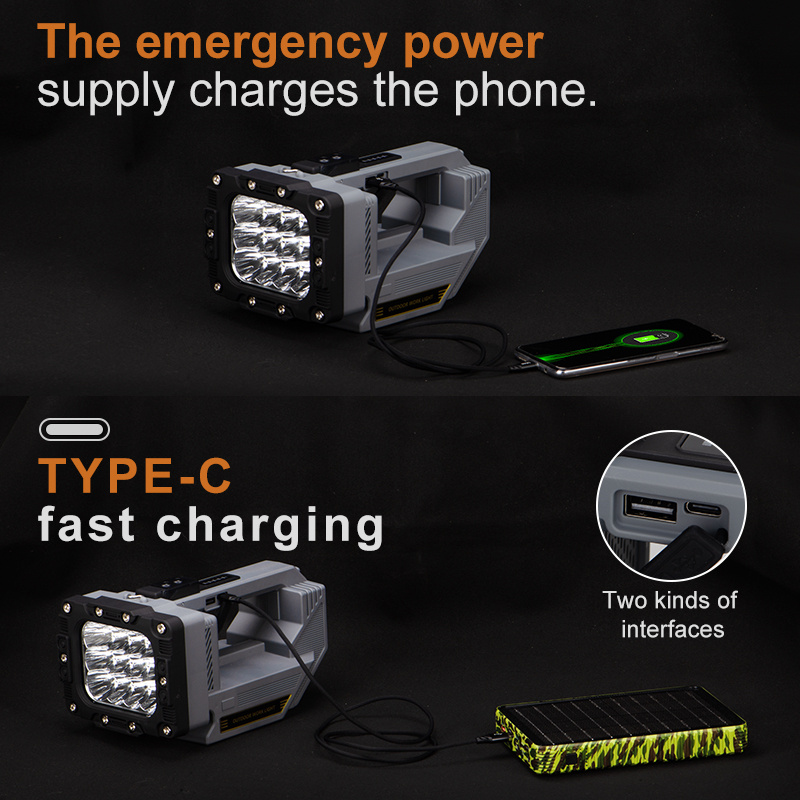 Powered by a massive 16,000mAh (4×21700) lithium battery pack, the W5233 offers flexible recharging through Type-C USB or solar power, ensuring reliable lighting—day or night, on or off-grid.
