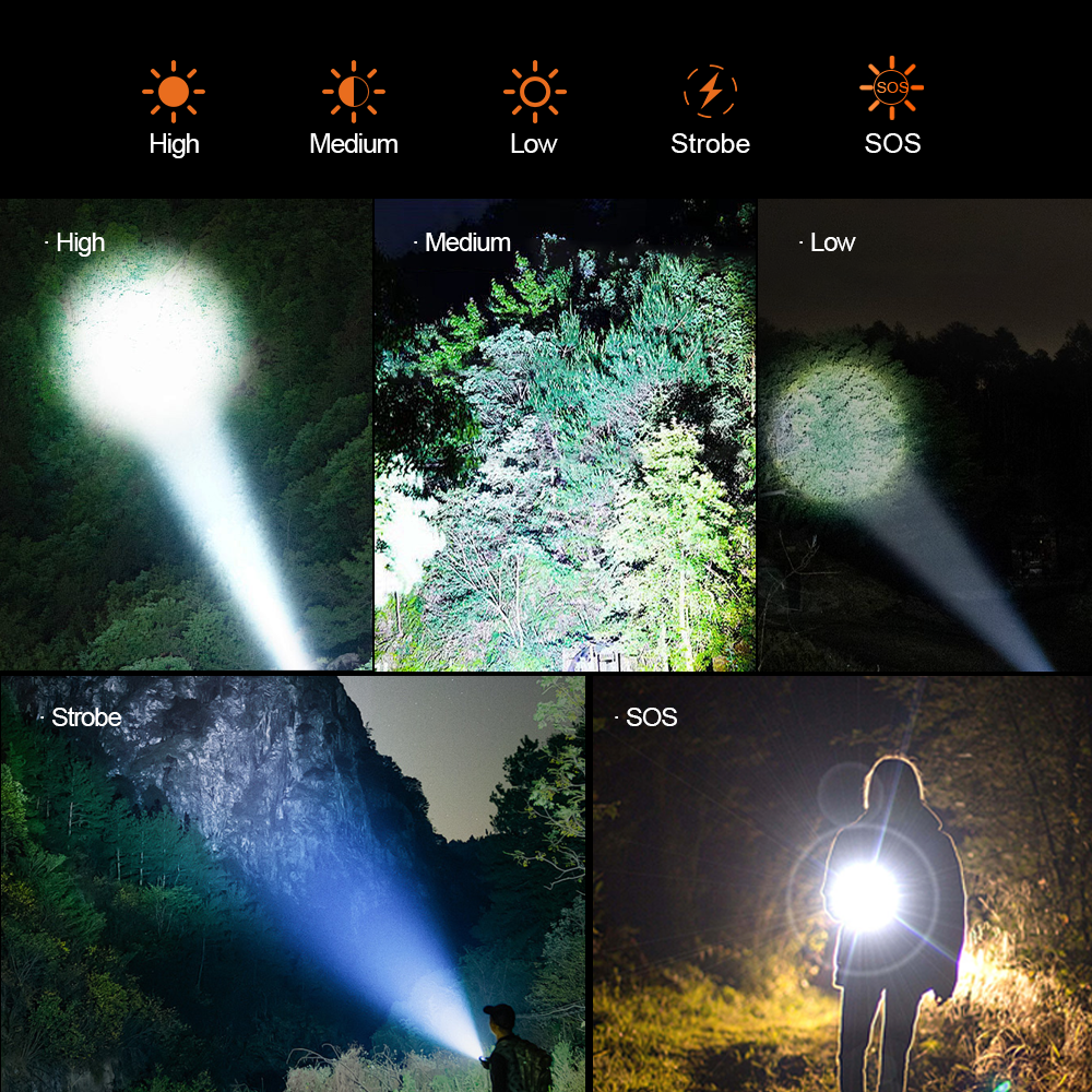 5 种模式 – 高、中、低、闪光、SOS