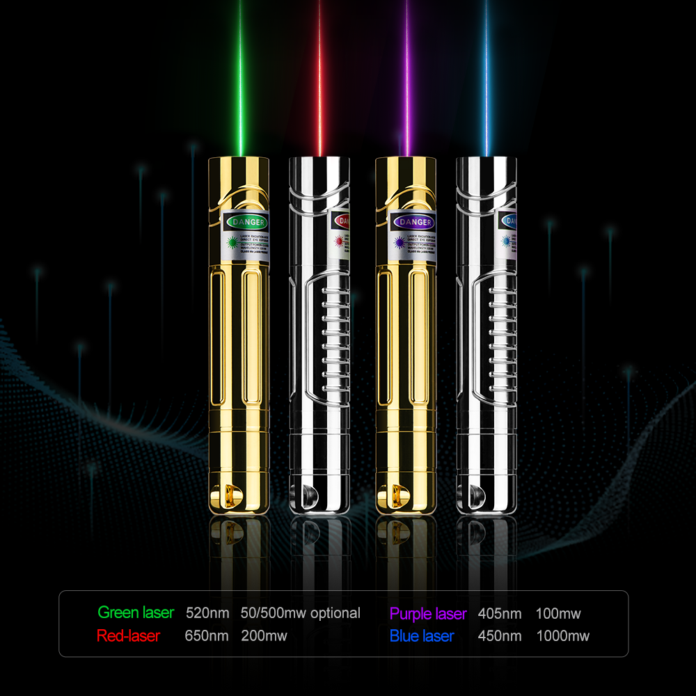 激光顏色: 綠色、藍色、紫色、紅色
